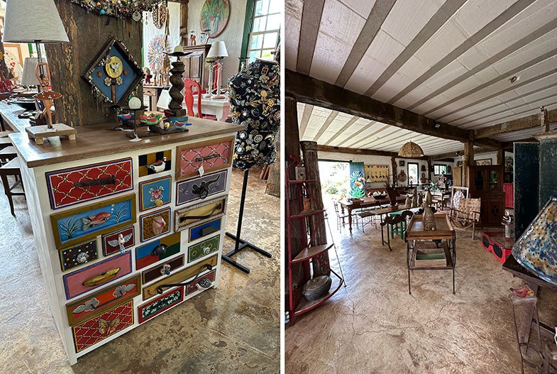 São vários ao longo da rua principal. Há lojas que vendem artesanatos produzidos na região, além de ateliês que também são as casas dos artistas.