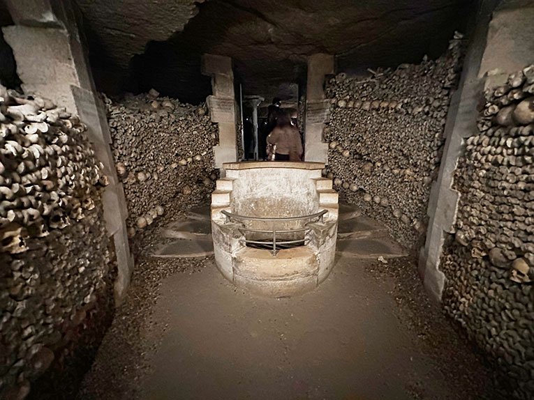 As catacumbas são o maior ossuário do mundo, são ossos de cerca de 6 milhões de pessoas. Foi aberto em 1809. Fica a 20 metros abaixo do nível da cidade e o pé direito é baixo, as pessoas altas precisam abaixar a cabeça em alguns pontos, mas nada de mais.