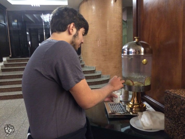 E ainda na recepção, disponível para os hóspedes água com limão pra refrescar, com certeza um mimo nos dias quentes da cidade.