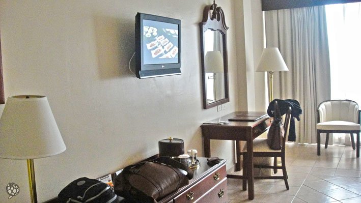 As instalações do hotel são muito boas, a mobília da recepção é um tanto antiga comparando com as dos nossos hotéis, mas sinceramente não sei se é o padrão panamenho, quando digo antigas me refiro ao modelo e não ao estado de uso ok?