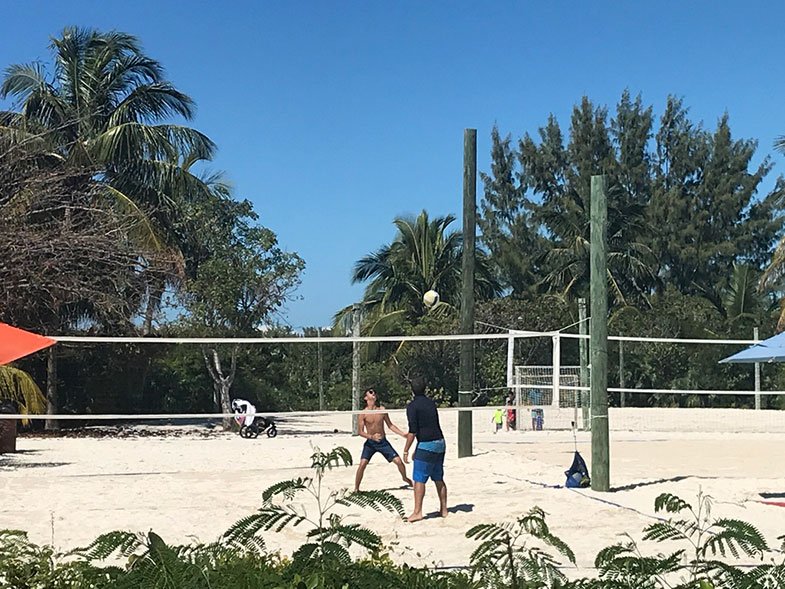 Os meninos quiseram ir jogar vôlei depois do banho de mar, viram que havia umas quadras com redes e se animaram, é a Beach Sports onde também tem área para futebol.