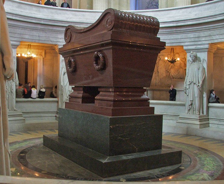 Napoleão morreu em 1821, mas só em 1840 seus restos mortais foram levados para o Les Invalides.