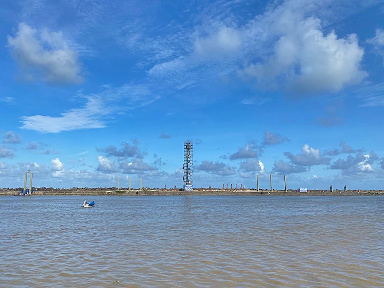 O espaço é bem amplo e fica às margens do estuário do Rio Capibaribe onde opera o Porto do Recife. De lá vemos o Parque das Esculturas de um lado e do outro os prédios antigos do bairro do Recife, conhecido como Recife Antigo.